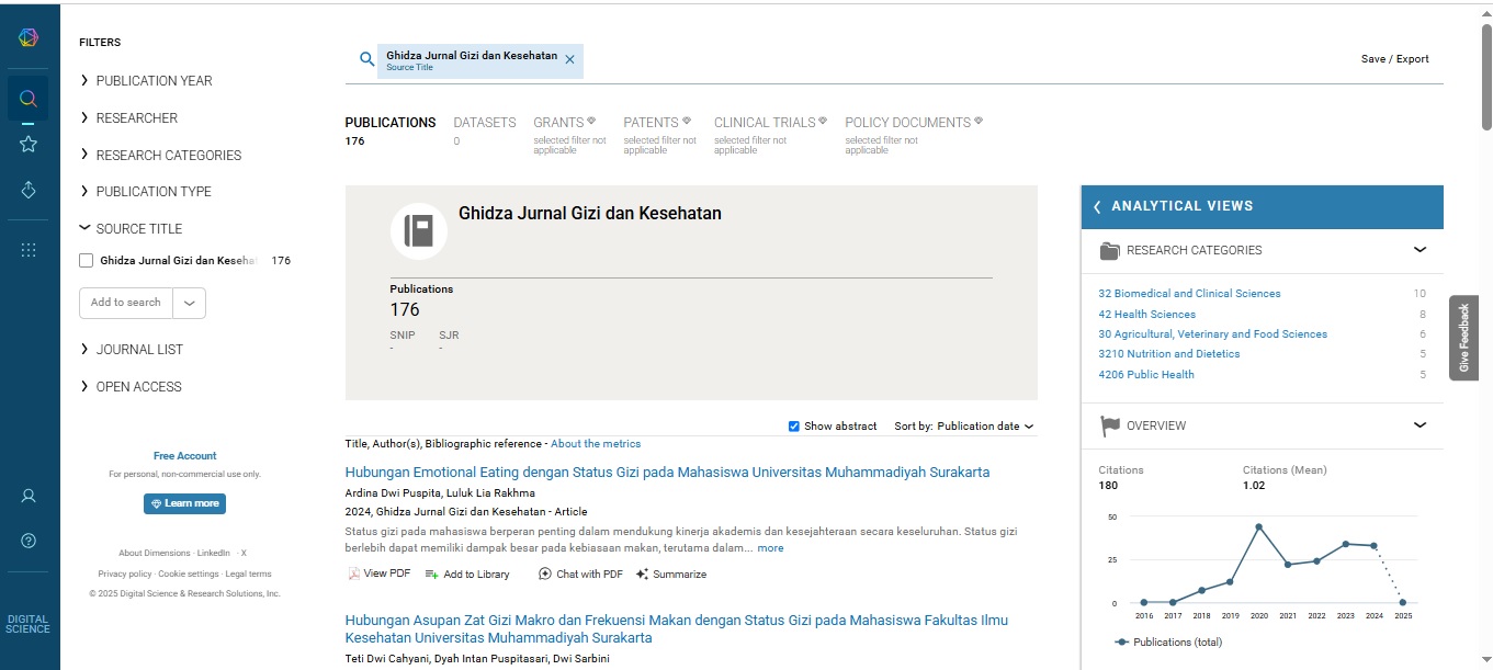 Ghidza : Jurnal Gizi dan Kesehatan is cited at least once in the dimension: